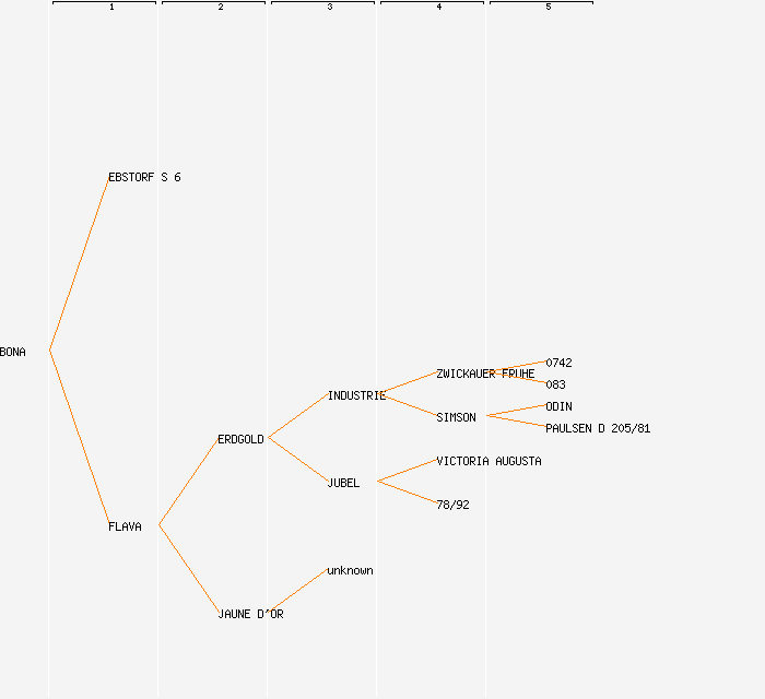 change image tree depth:     Show year of release (when known): BONA (1944) EBSTORF S 6 FLAVA (1931) ERDGOLD (1928) JAUNE D'OR (<1850) INDUSTRIE (1900) JUBEL (1908) unknown ZWICKAUER FRUHE (1883) SIMSON (1888) VICTORIA AUGUSTA 78/92 0742 083 ODIN PAULSEN D 205/81