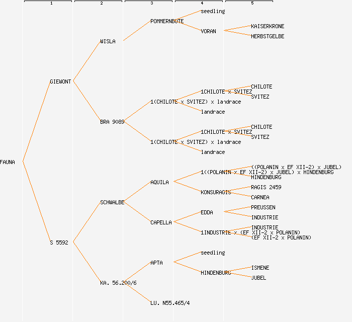 change image tree depth:     Show year of release (when known): FAUNA (1984) GIEWONT (1955) S 5592 WISLA BRA 9089 SCHWALBE (1956) KA. 56.200/6 POMMERNBOTE (1946) 1(CHILOTE x SVITEZ) x landrace (1955) 1(CHILOTE x SVITEZ) x landrace (1955) AQUILA (1942) CAPELLA (1943) APTA (1951) LU. N55.465/4 seedling VORAN (1931) 1CHILOTE x SVITEZ (1955) landrace 1CHILOTE x SVITEZ (1955) landrace 1((POLANIN x EF XII-2) x JUBEL) x HINDENBURG (1942) KONSURAGIS (1930) EDDA (1932) 1INDUSTRIE x (EF XII-2 x POLANIN) (1943) seedling HINDENBURG (1916) KAISERKRONE HERBSTGELBE CHILOTE SVITEZ CHILOTE SVITEZ ((POLANIN x EF XII-2) x JUBEL) HINDENBURG RAGIS 2459 CARNEA PREUSSEN INDUSTRIE INDUSTRIE (EF XII-2 x POLANIN) ISMENE JUBEL