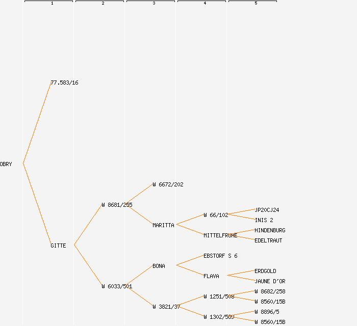 change image tree depth:     Show year of release (when known): OBRY (1997) 77.583/16 GITTE (1974) W 8681/255 W 6033/501 W 6672/202 MARITTA (1947) BONA (1944) W 3821/37 W 66/102 MITTELFRUHE (1933) EBSTORF S 6 FLAVA (1931) W 1251/508 W 1302/589 JP20CJ24 INIS 2 HINDENBURG EDELTRAUT ERDGOLD JAUNE D'OR W 8682/258 W 8560/15B W 8896/5 W 8560/15B